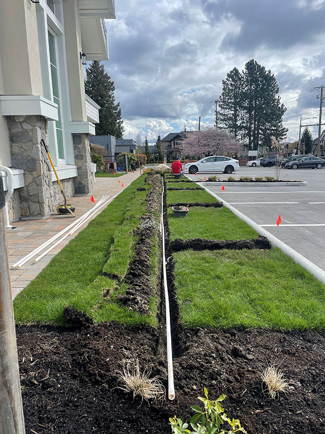 Details: Client wanted to keep all current landscaping in place, as client had mistimed project and had landscaping done too early. It was on Rainco to ensure that project was to make no changes to the look and feel of the lawn. Need to salvage the overall project. Final result: Big thumbs up. Client was ecstatic with results!